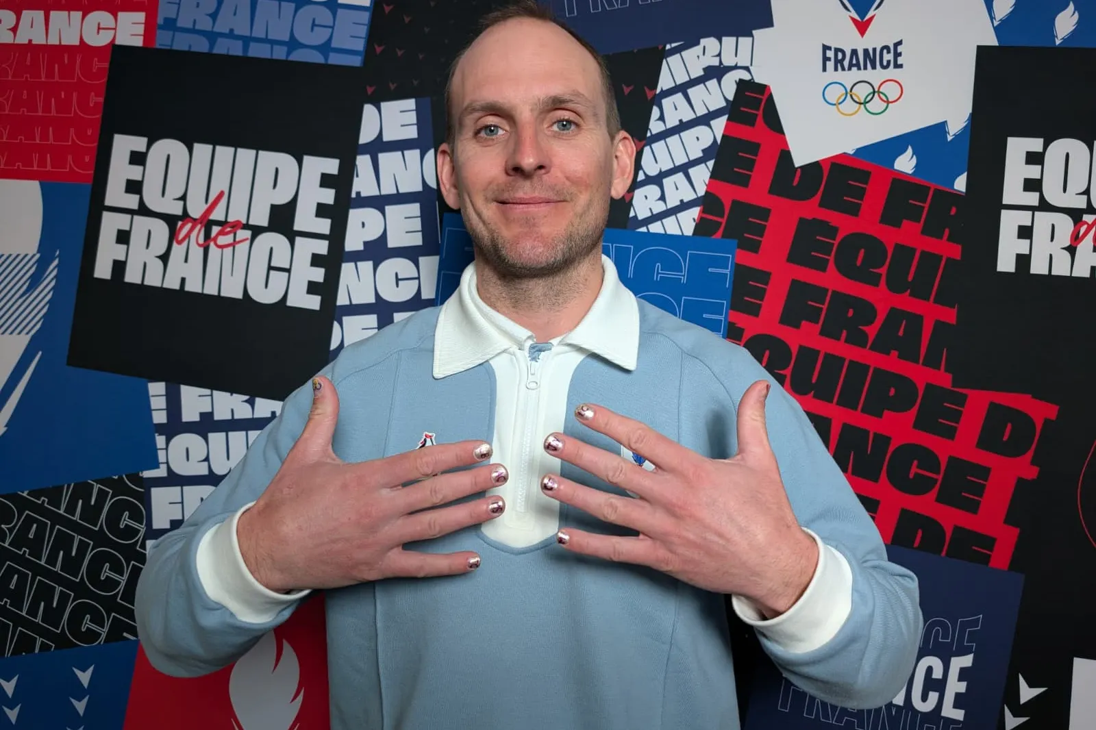 En s’installant dans le fauteuil du Club France pour la traditionnelle conférence de presse d’avant Jeux, un détail fait mouche sur les mains de Kévin Strucl. Le responsable de l’équipe de France de snowboard cross porte du vernis à ongles très original. Des paillettes, des dessins et des lettres capitales. A première vue, cela fait penser à un pari perdu. Que nenni. Le principal intéressé s’est laissé tenter par ses protégées, Léa Casta et Julia Nirani-Pereira. « C’est lui qui a commencé à nous parler de ses ongles », remet dans le contexte l’aînée de ce duo inséparable. Mais alors, d’où vient cette idée farfelue ? « Quand on s’est préparé pour la cérémonie d'ouverture, on est allé se faire maquiller chez Kiko. On en a profité pour acheter tout le nécessaire pour lui faire ses ongles ».