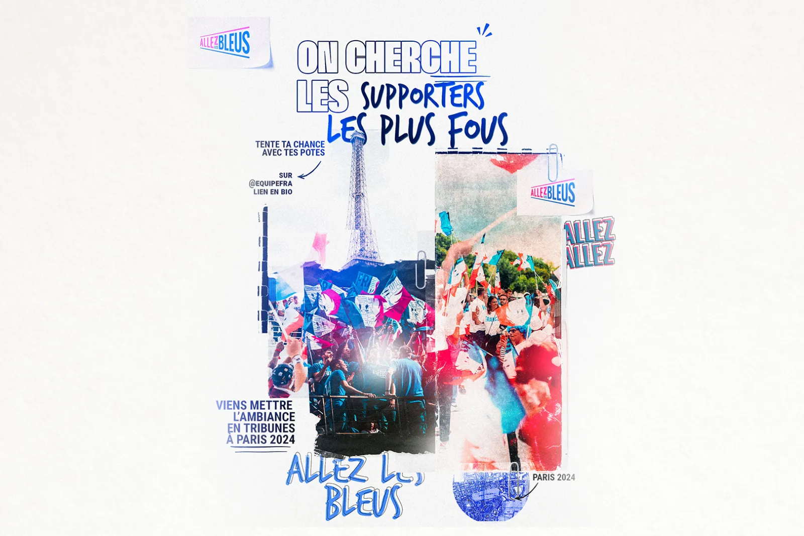 Tu veux mettre l'ambiance dans les carrés de supporters pendant les Jeux ? Chants, tifos, drapeaux… On recherche les supporters les plus fous pour venir encourager nos Bleus 📣
